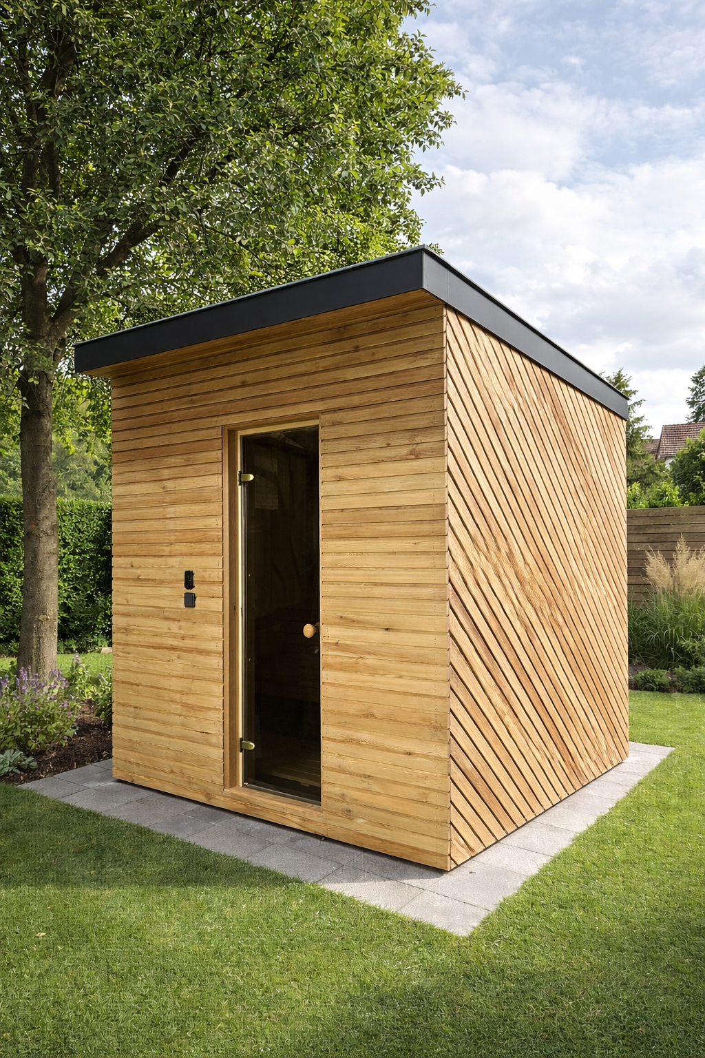 Kvalitní venkovní sauna pro 2-5 osob s rychlým nahřátím, nízkou spotřebou a pohodlným ovládáním přes mobil.